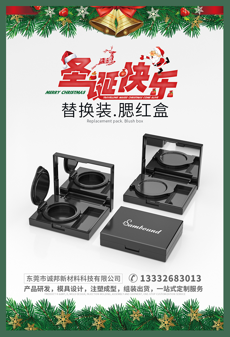 在此,東莞誠邦新材料科技有限公司祝大家度過一個美好的圣誕節(jié)。我們誠邦開模注塑幾千款彩妝包材:如口紅管、眼影盤、睫毛膏管、唇彩管等各式各樣的包裝,服務國內(nèi)外各大品牌客戶,產(chǎn)品遠銷歐美、東南亞等地區(qū),包材得到大家的一致喜愛和認同。