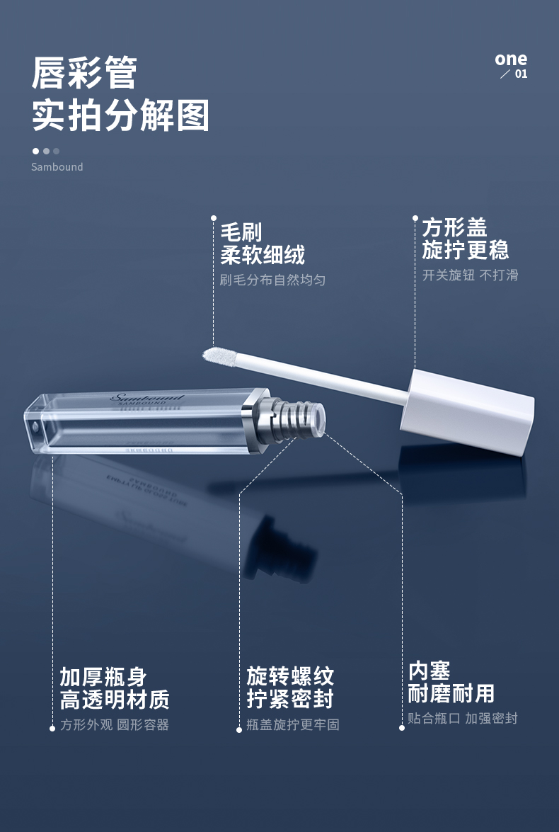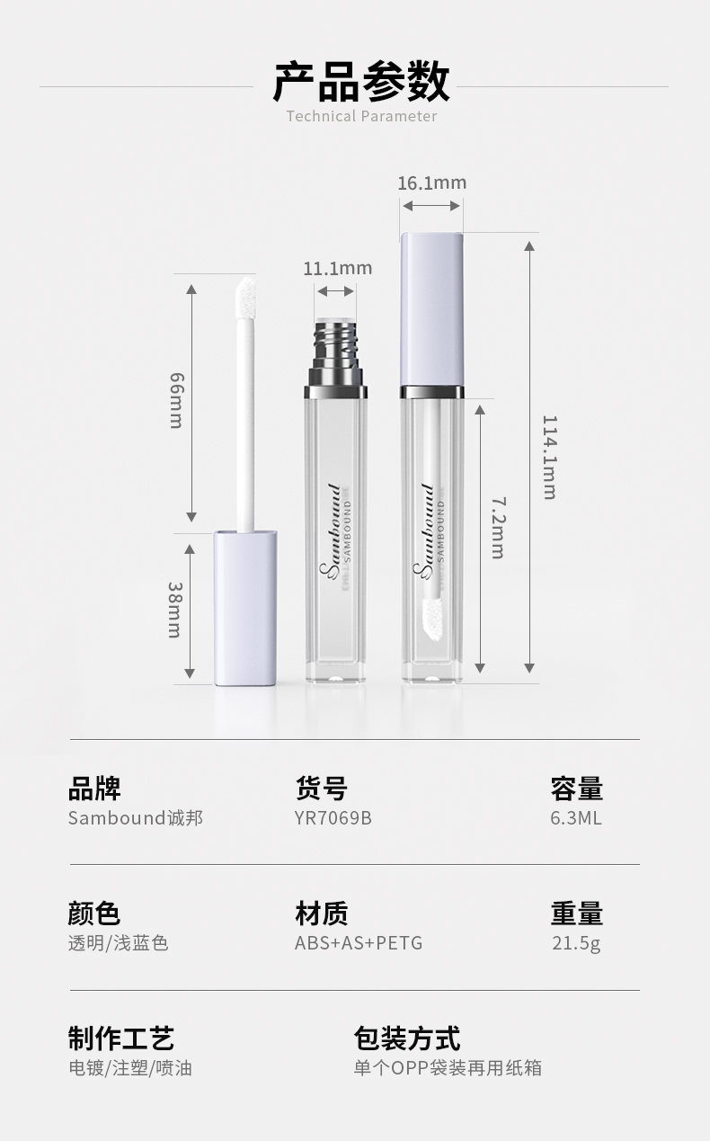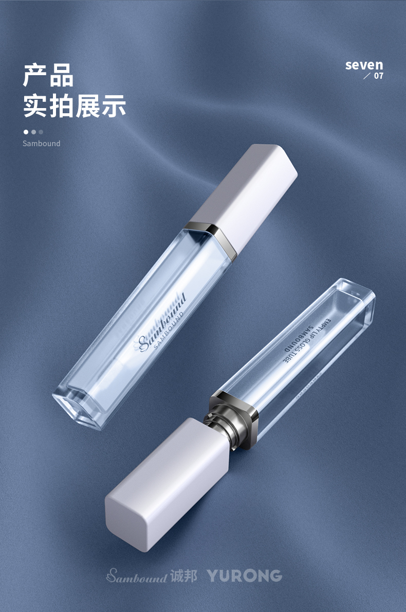 方形唇彩管空管,噴漆蓋子,中束電鍍銀色,可接客戶設計圖稿絲印LOGO,橡膠刷頭,免費打樣