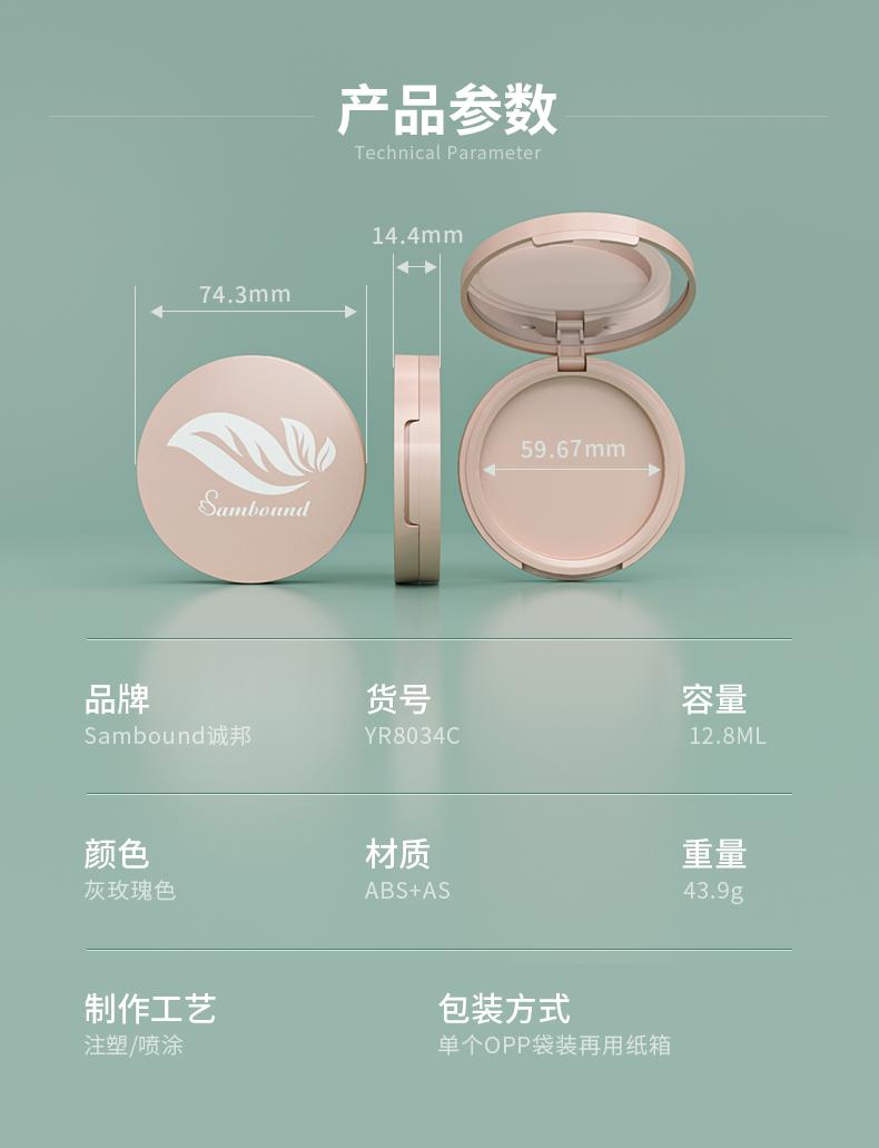 誠(chéng)邦新材料科技有限公司定制12 8ml圓形便攜粉餅分裝空盒子,可以加工定制化妝品包裝,也可以自定義logo