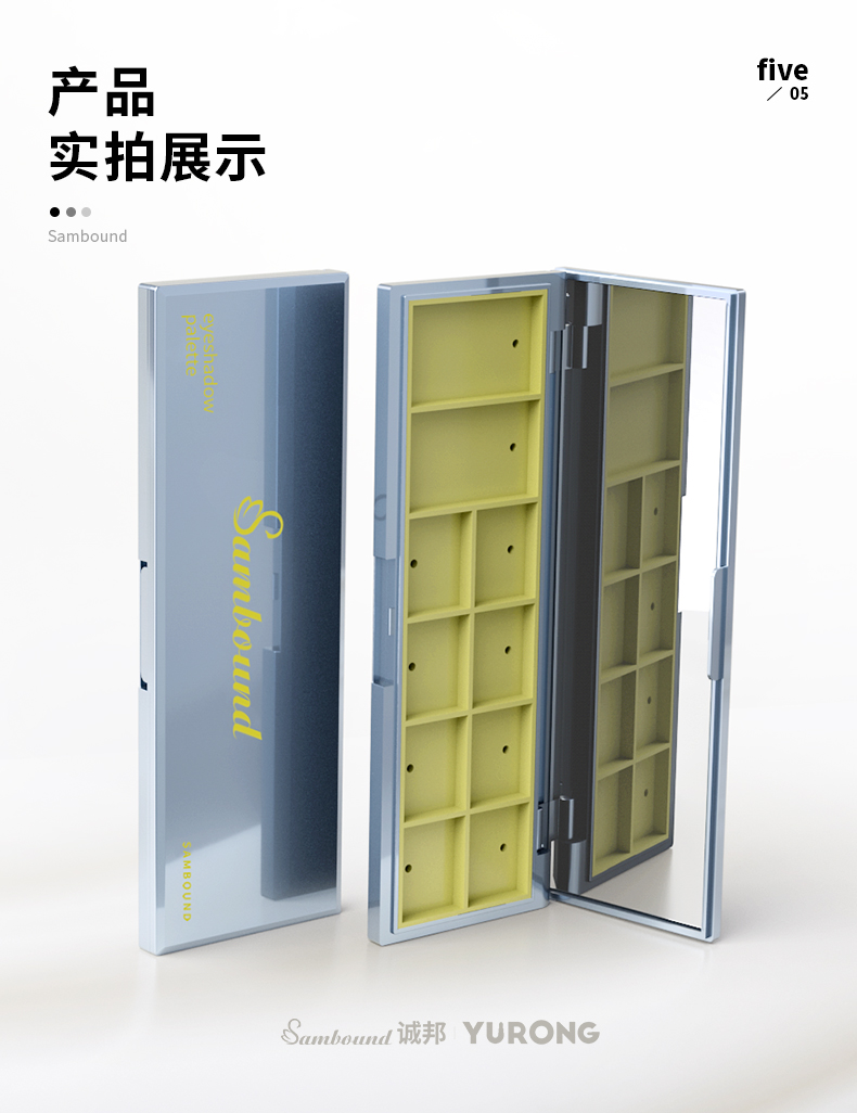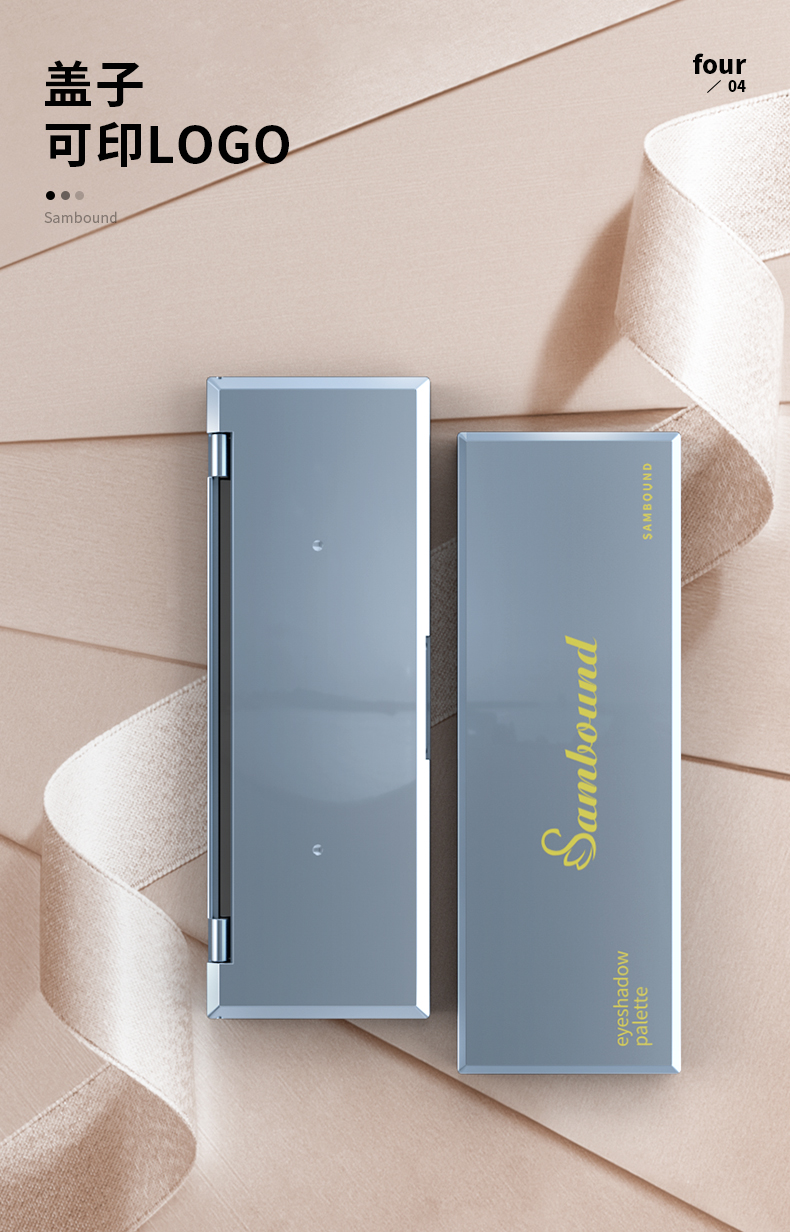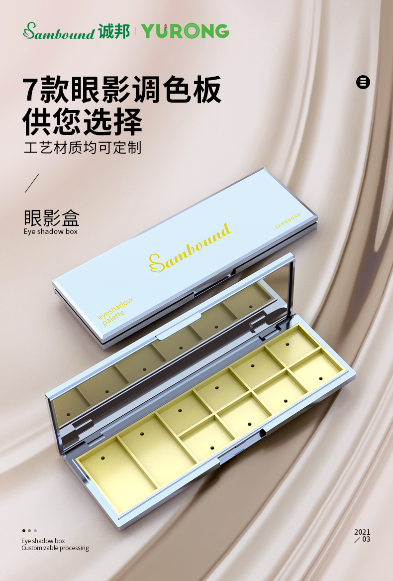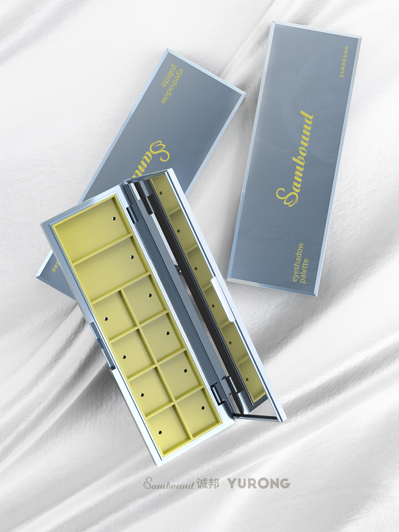 這款眼影盤采用電鍍工藝,我們誠邦塑膠是可定制logo和顏色的化妝品包裝的廠家