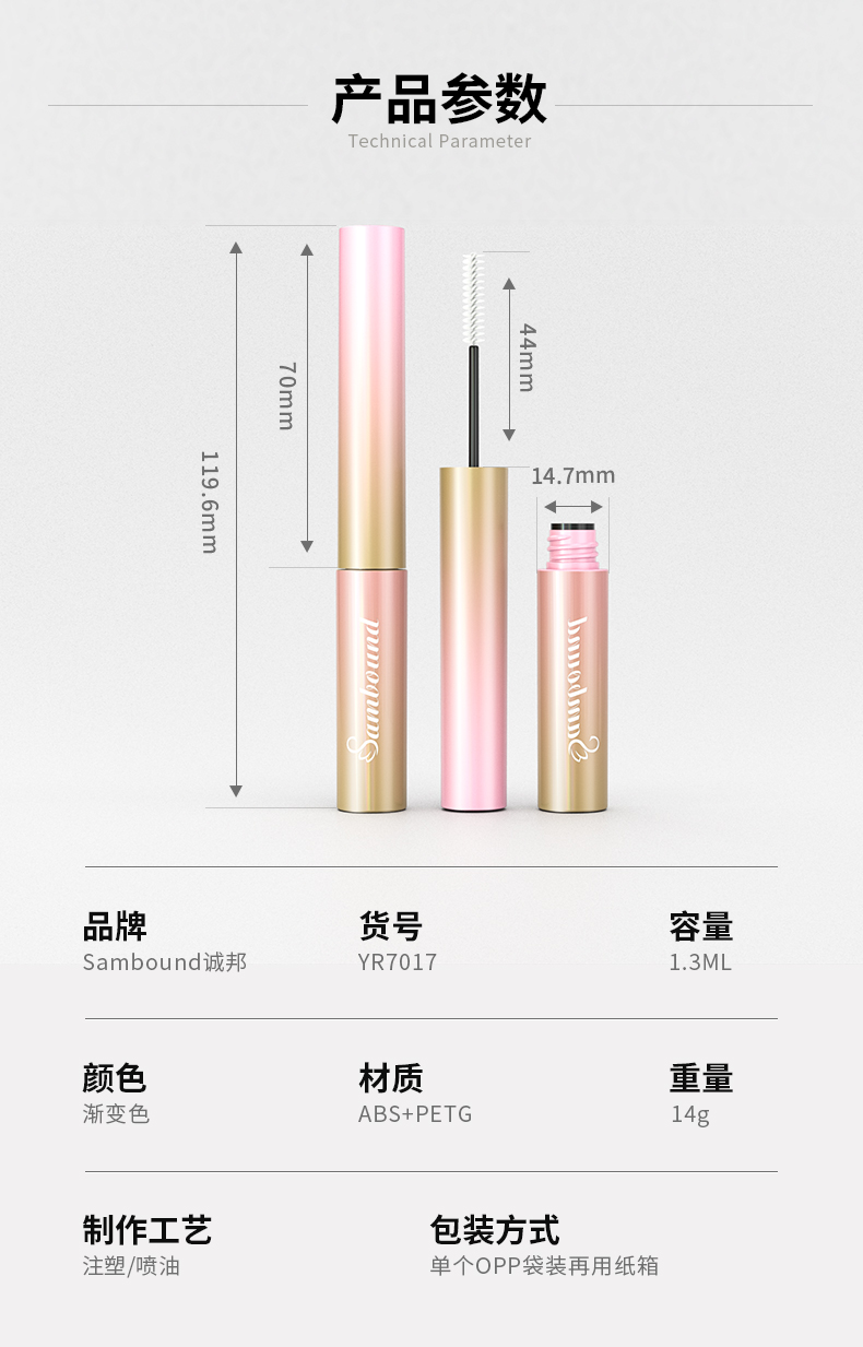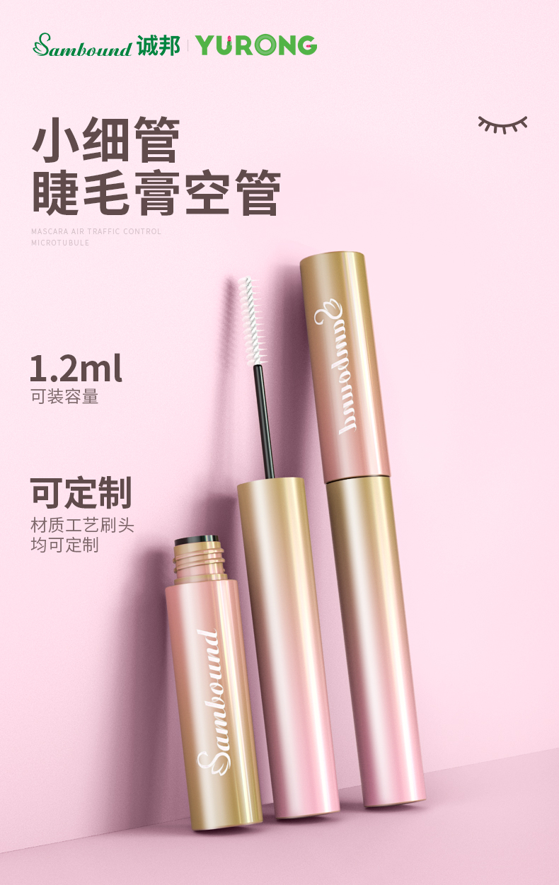 迷你小細管睫毛膏空管化妝品包材注塑件特點:可定制刷頭,旋轉螺紋開關,瓶口加內塞,可定制表面工藝,容量1 2ml,誠邦化妝品包材注塑廠家。