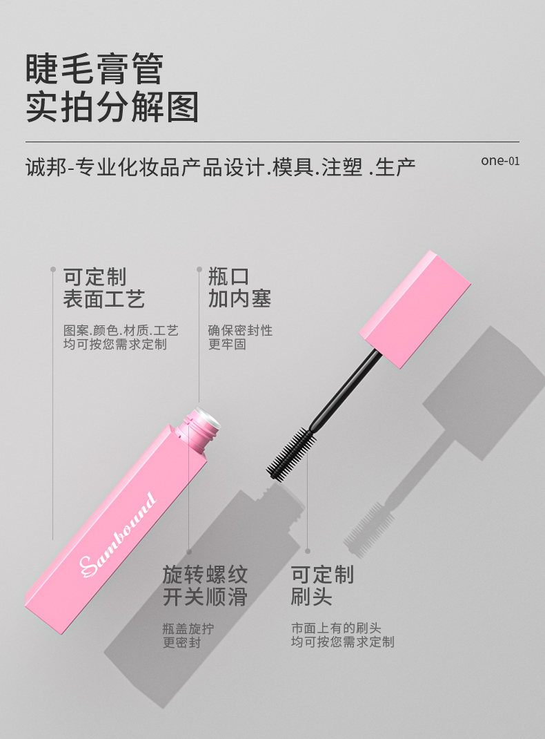 注塑模具加工廠定制方形睫毛膏管,可定制logo、顏色