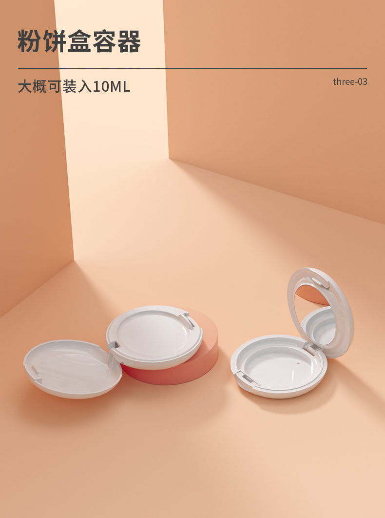 這款帶粉撲層粉餅盒,誠邦圓形空的粉餅盒氣墊盒空盒簡約BB霜盒注塑加工廠,可以為您定制logo顏色,該產(chǎn)品內(nèi)置高清化妝鏡,10ml容量